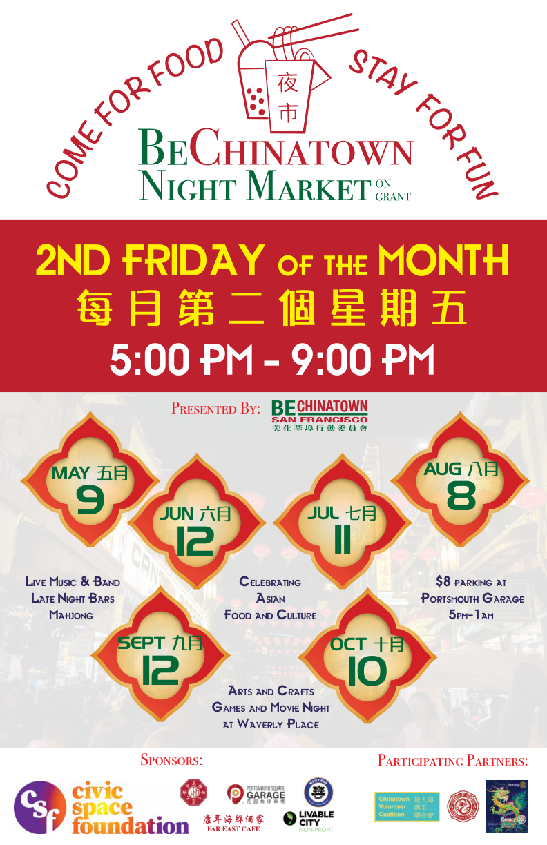 The night market is located on Grant Ave between California St and Pacific Ave in downtown Chinatown.
